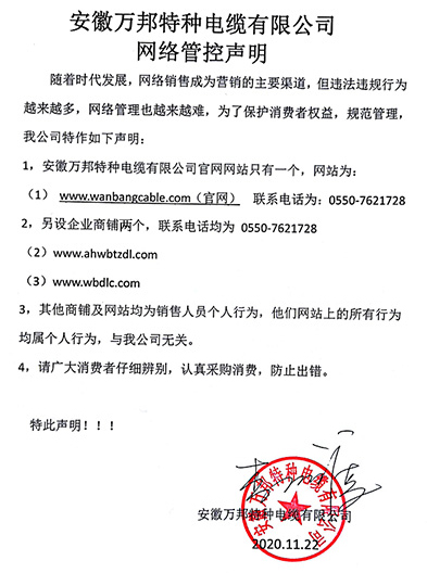 鄭重聲明:安徽萬邦特種電纜有限公司官方網站為:www_wanbangcable_com.qiannian8.cn,除此之外無任何子網站或合作網站,其余均為假冒偽劣。電話:0550-7621728 13485756353 地 址:安徽省天長市滁州高新技術產業開發區經四路29號
